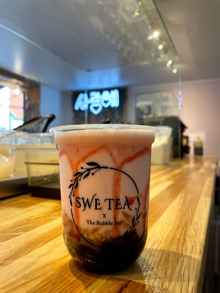Locals and visitors alike stop by Swe Tea to enjoy a refreshing bubble tea while taking in the street view through large windows or gathering around the communal long table inside. It’s easy to linger here — the friendly staff help create a welcoming vibe, often guiding newcomers to pick something that suits their taste if they’re undecided. The tapioca pearls are noted by many for their freshness and pleasant chewiness, complementing the variety of tea bases on offer such as jasmine green or matcha blends.
